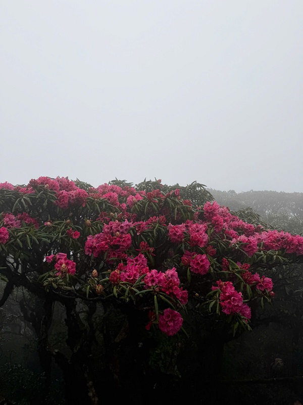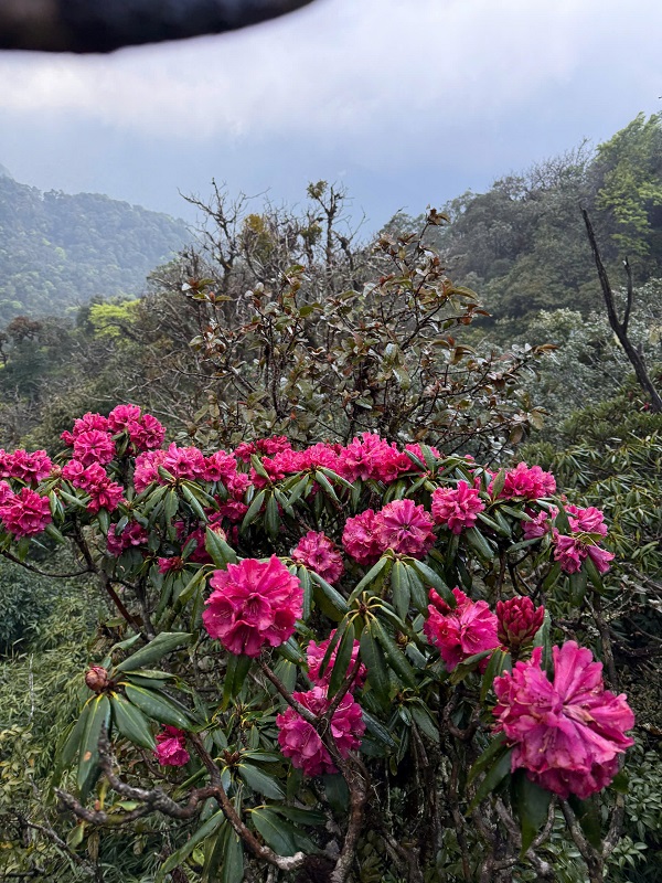 From the Lao Cai side, the rhododendron forests may not be as dense or vibrant as those on the other slope, but in return, the landscape feels more diverse. From higher points, I could recognize the silhouettes of iconic peaks of the Northwest such as Fansipan, Ky Quan San, Lao Than, Nhiu Co San, and Ngu Chi Son—all appearing majestic and almost sacred in their own way.